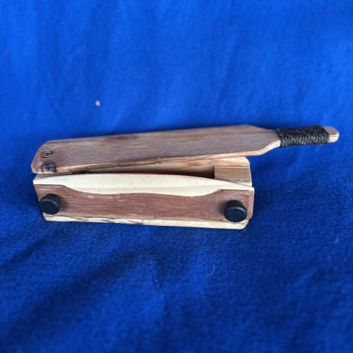 This new box call is revolutionary in its design and is patent pending at this time. It's sides aren't permanently glued and by loosening or tightening tension one can create multiple bird sounds with ease. It also purrs really well and has the ability to make very raspy hen yelps. I hand make and tune each call with great care. The call you receive may look different than the one in the photo. I use many different wood combinations and it would be nearly impossible to show them all.